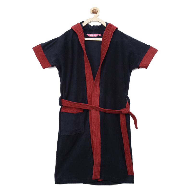 Features of Boys Navy & Maroon Hooded Bathrobe