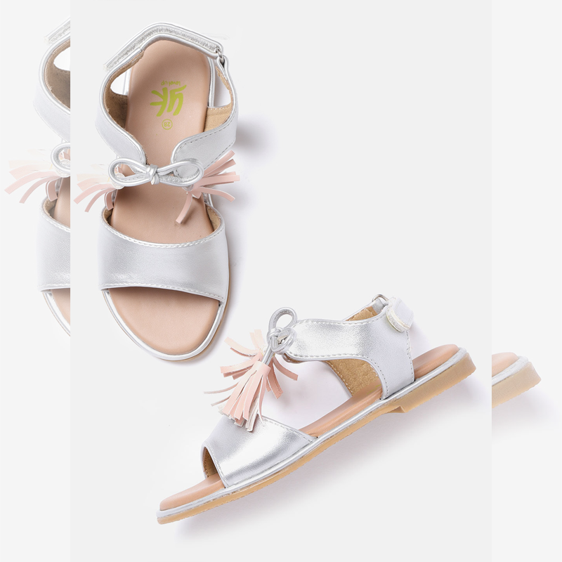 Features of YK Girls Silver-Toned Solid Open Toe Flats