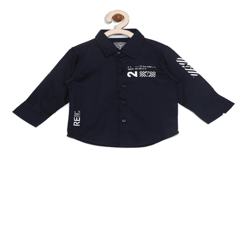 Features of Boys Navy Regular Fit Printed Detail Casual Shirt