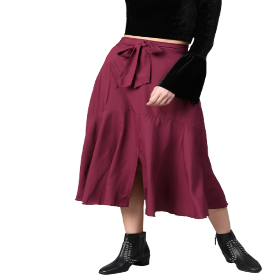 Features of Women Burgundy Solid Midi A-Line Skirt