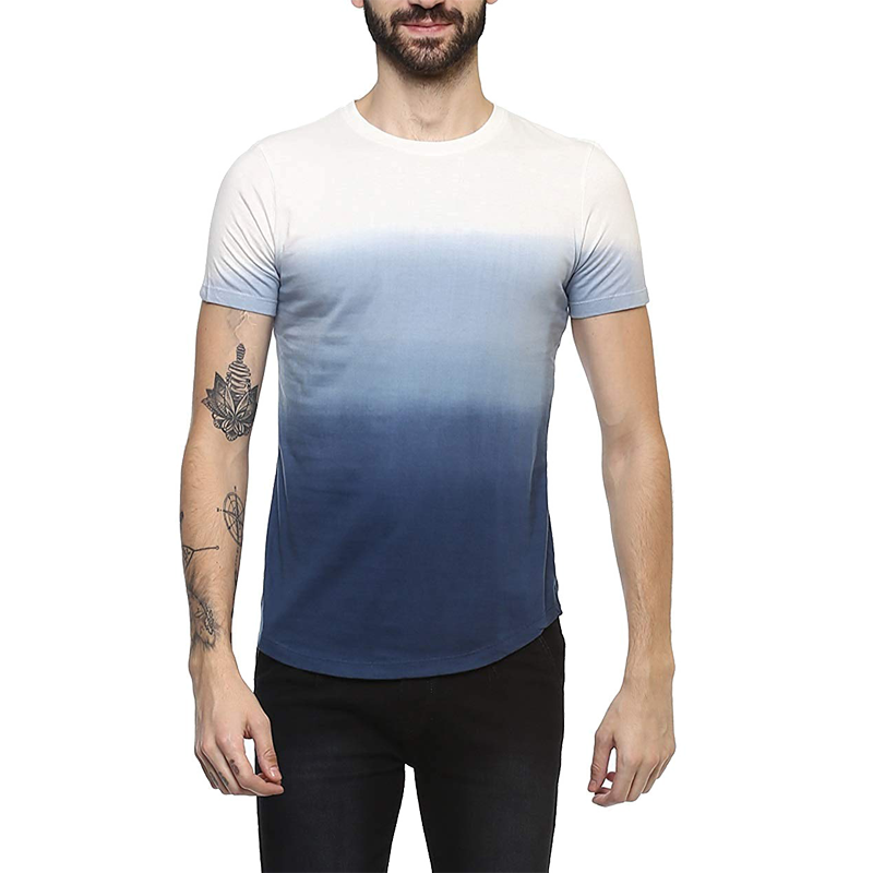 Features of Urbano Fashion Men's Blue Cotton Ombre Dyed Slim Fit T-Shirt