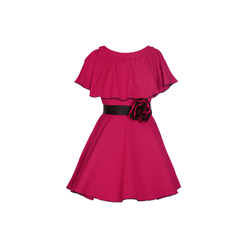 Features of Girls Magenta Solid Fit and Flare Cape Dress