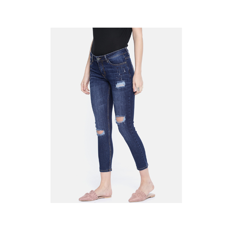 Features of Women Blue Slim Fit Mid-Rise Mildly Distressed Stretchable Jeans