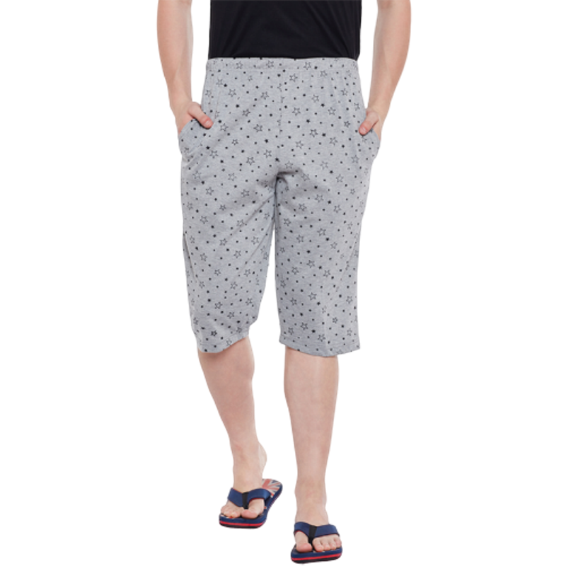 Features of VIMAL Grey Melange Printed Lounge Shorts D13-PRT