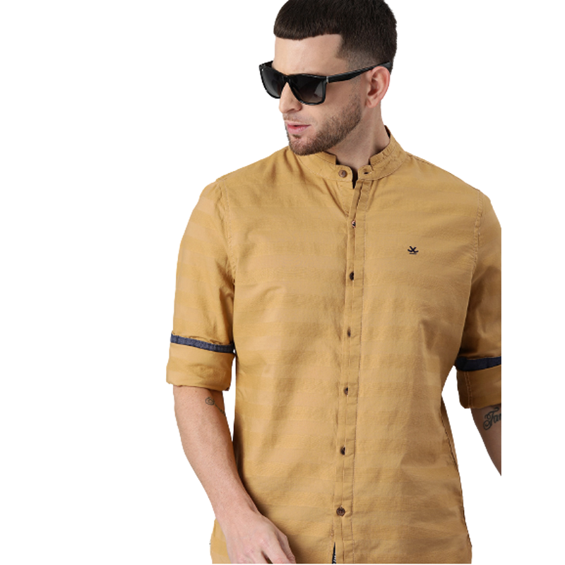 features of Men Camel Brown Slim Fit Self Striped Casual Shirt