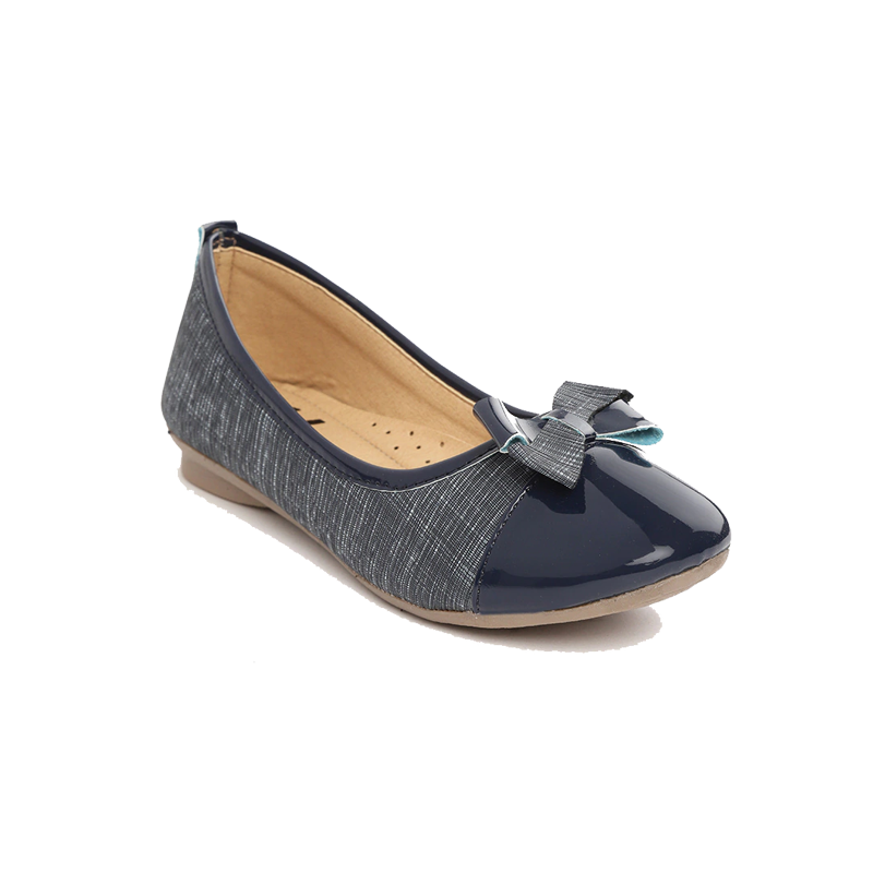 Girls Navy Blue Textured Ballerinas With Bow Detail : -