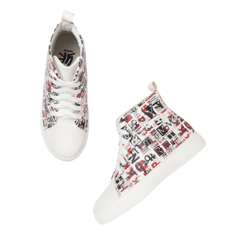 Features of Yk Girls Off White & Black Printed Mid-Top Sneakers