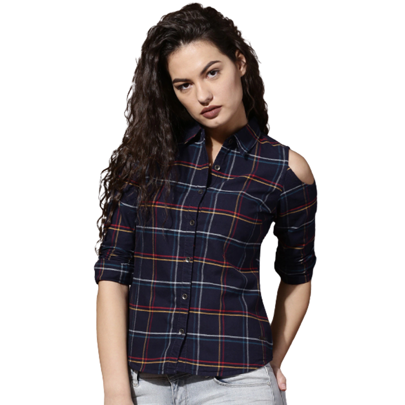 Features of Women Navy Blue Checked Casual Shirt