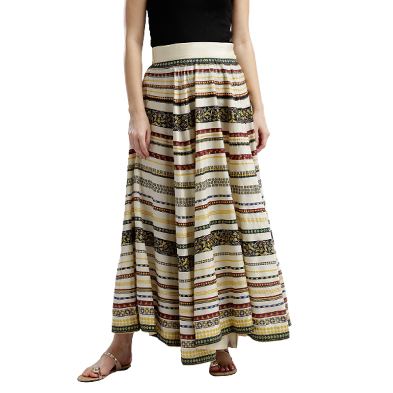 Features of Wishful by Women Off-White & Black Printed Maxi Flared Skirt