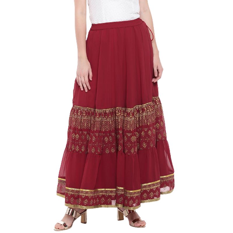 Features of Women Maroon Foil Printed Maxi A-Line Skirt