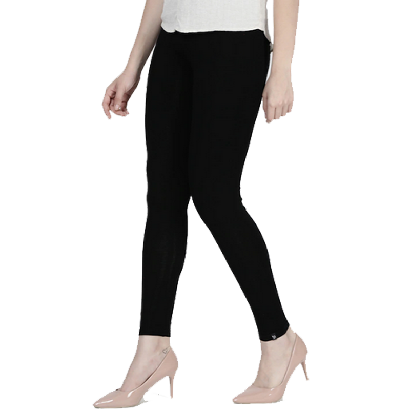 Feature Of Women Black Solid Plus Ankle-Length Leggings