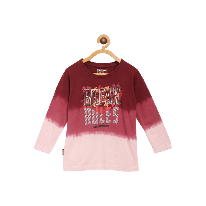 Features of Boys Burgundy & Maroon Tie & Dye & Printed Round Neck T-Shirt