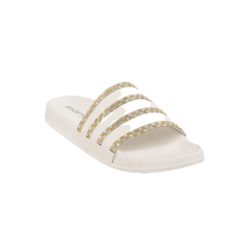 DressBerry Women White & Gold-Toned Striped Open Toe Flats