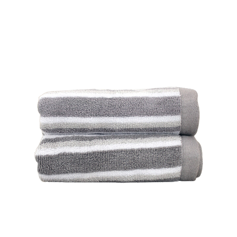 AVI Living Set Of 2 Grey & White Striped 550 GSM Hand Towels