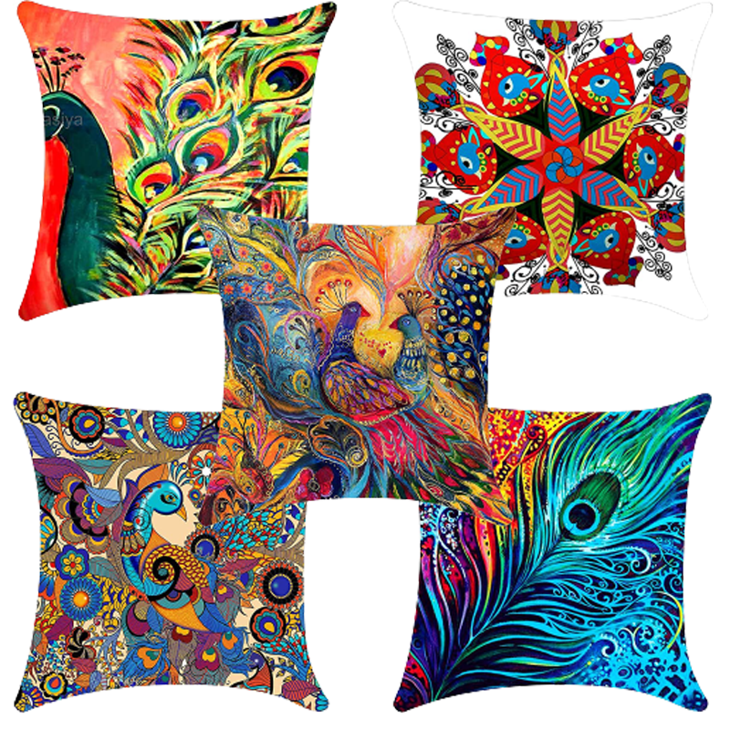 Swasiya Satin Digital Printed Sofa Cushion Cover Pack of 5