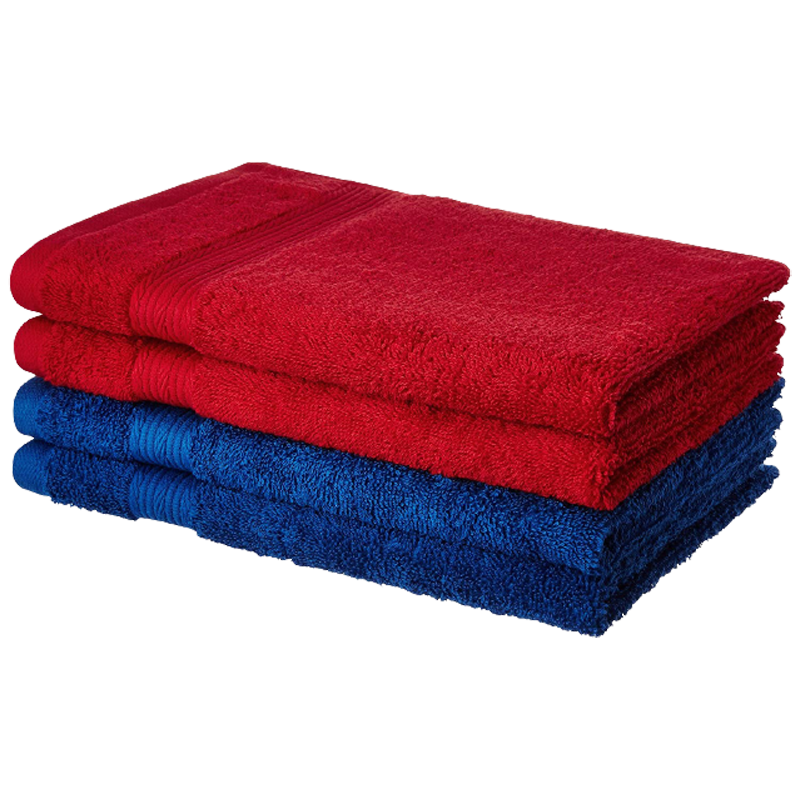 Features of Solimo 100% Cotton 4 Piece Hand Towel Set, 500 GSM (Iris Blue and Spanish Red)
