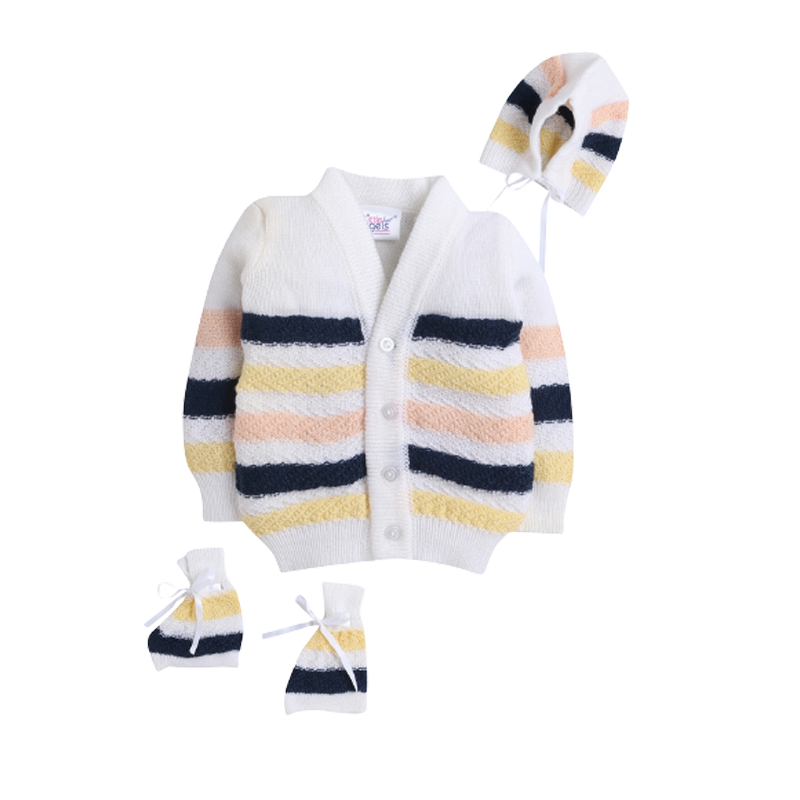 Little Angels Infants Kids Acrlic Self Design Cardigan Sweater Set