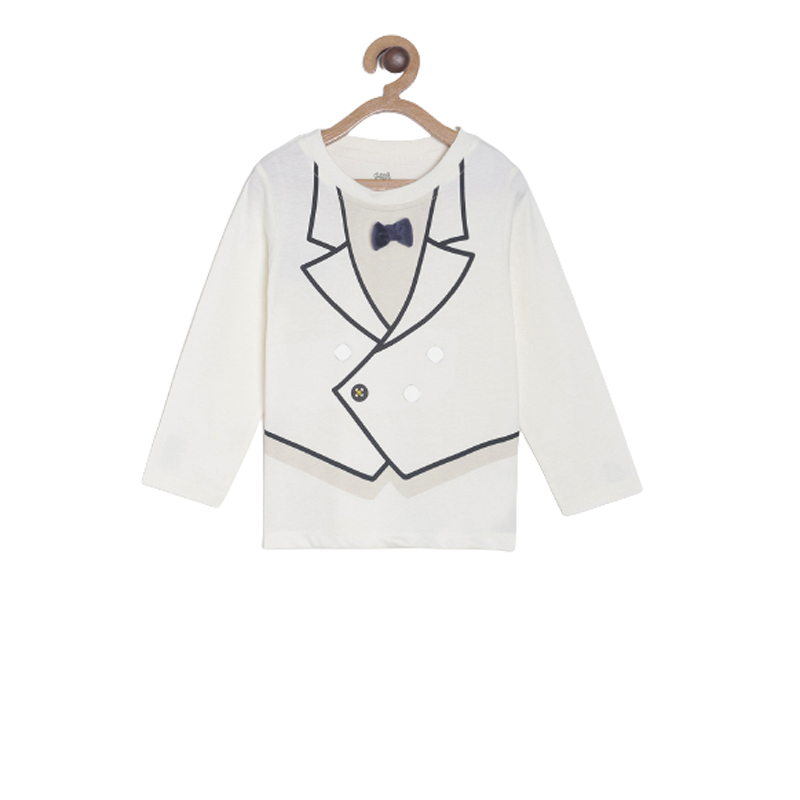 Mini Klub Boys Off-White Printed Round Neck Pure Cotton T-Shirt