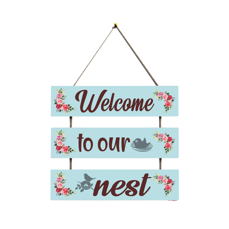 Welcome To Our Nest Wooden Wall Hanging Board Plaque Sign