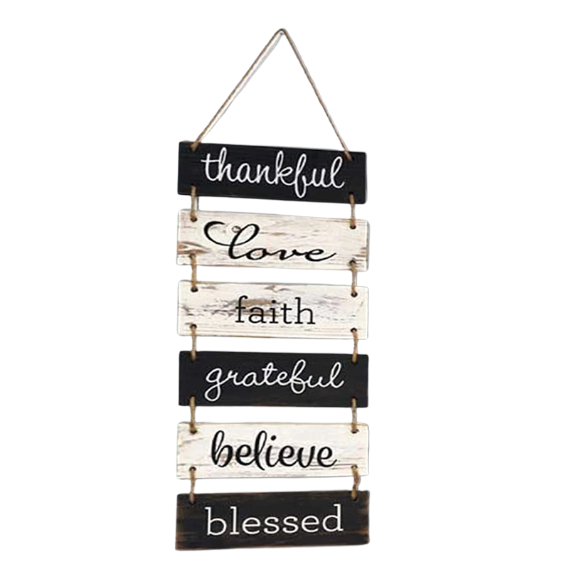 Thankful Love Faith Grateful Beleive Blessed" Wood Look Decorative Sign Plaque