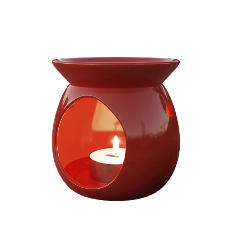 The Earth Store Ceramic Handcrafted Decorative Red Aroma Oil Burner / Tealight Candle Holder Diffuser Air Purifier And Freshener For Aromatherapy