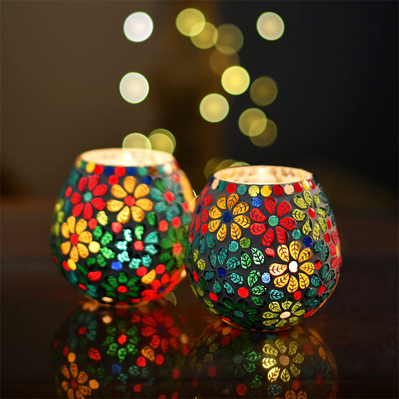 Tealight Candle Holders For Home Decoration, Mosaic Glass | Diwali Lighting For Home Decoration, Diwali Decoration Items, Diwali Gifts Item | Pack Of 2