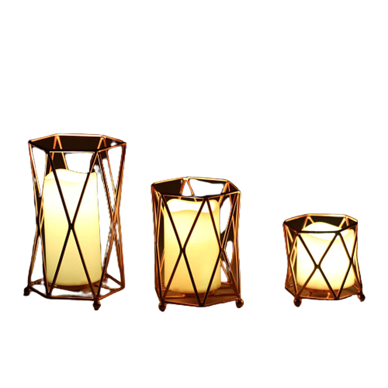 Quace Set Of 3 Nordic Style Candle Holder Gold Geometric Metal Iron