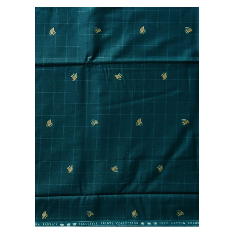 Men'S Premium Cotton Unstitched Checkerd Printed Floral Cloth Fabric (Ocean Blue, 1.6 Meter)