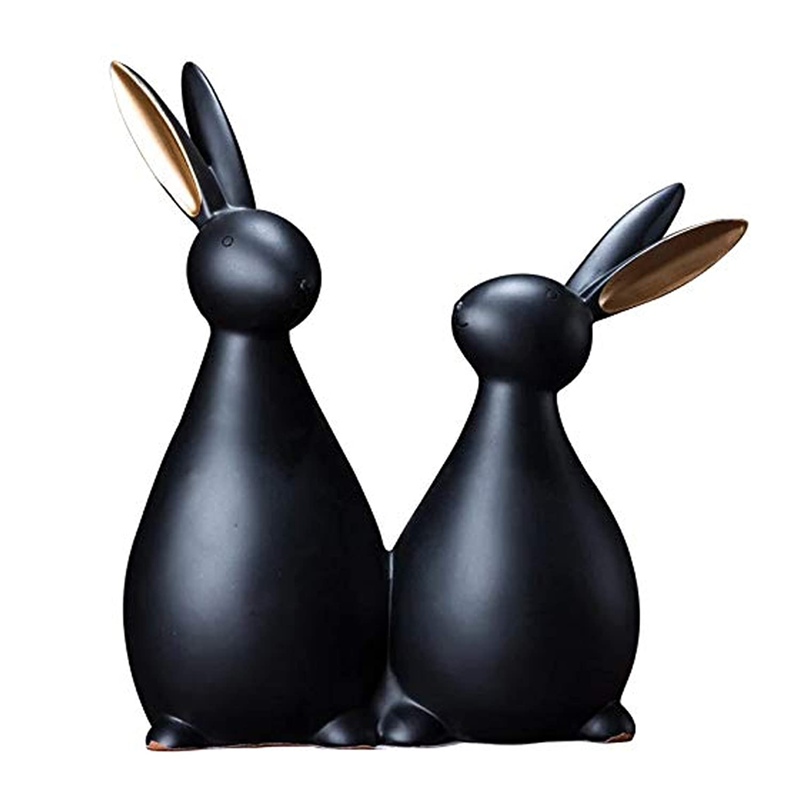 Ladrox Ceramic Rabbit Figurines For Home Decoration (Pack Of 2, Black)