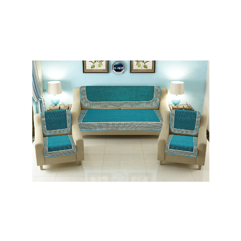 The Set Contains 1 long back cover for 3 Seater Sofa (27 x 69 Inch) , 1 long seat cover for 3 Seater sofa (27 x 69 Inch) , 2 Back covers (23 x 27 inch) and 2 Seat cover (23 x 27 inch) for single seat sofa & 6 Pcs Arm Covers