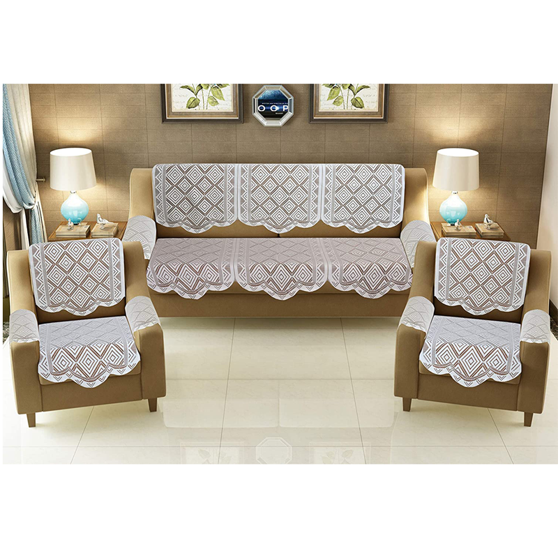 Content : 12 pcs (Packaged Included:-1 Long Back Cover For 3 Seater Sofa, 1 Long Seat Cover For 3 Seater Sofa,2 Back Covers & 2 Seat Cover For Single Seater Sofa And 6 Arms Covers), Colour : Off White.