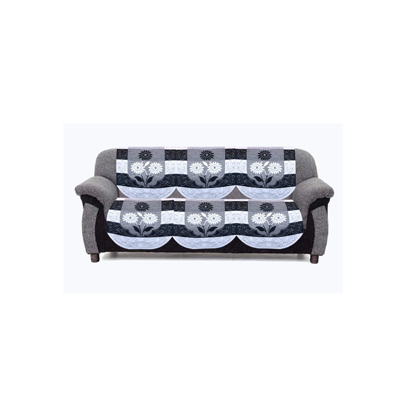 Kuber Industries Flower Cotton 2 Piece 3 Seater Sofa Cover (Black) - Ctktc22245