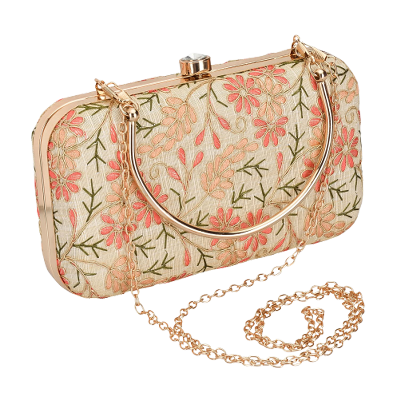 ACCESSORIES : This stylish ladies clutch bag comes with 2 detachable accessories - a gold metal chain and a premium gold metal handle. The metal chain can be attached to the clutch bag and be hung on the shoulder to be used as a sling. The metal handle can be attached to the clutch bag and be used as a wristlet too giving you a very stylish look.