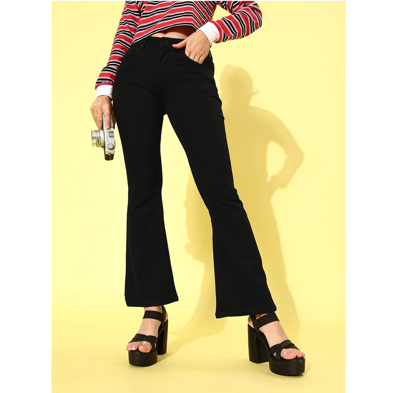 Here&Now Women Black Bootcut High-Rise Clean Look Stretchable Jeans