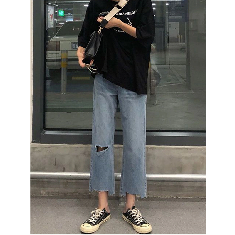 Urbanic Women Blue Ripped Straight Leg Cropped Jeans