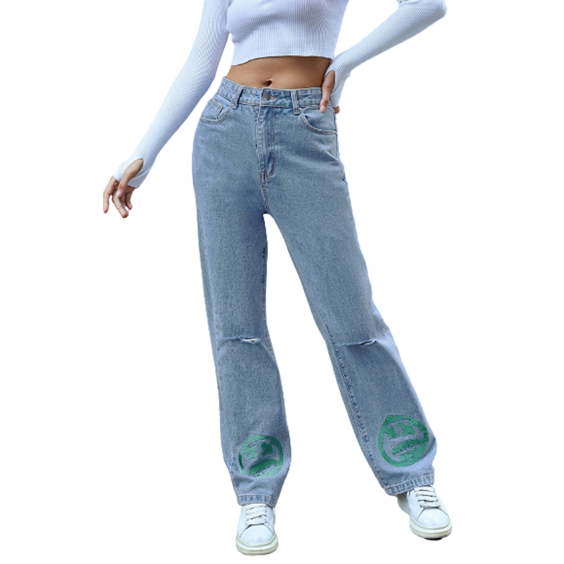 Urbanic Women Blue Cotton Relaxed Fit Mildly Distressed Light Fade Embroidered Jeans