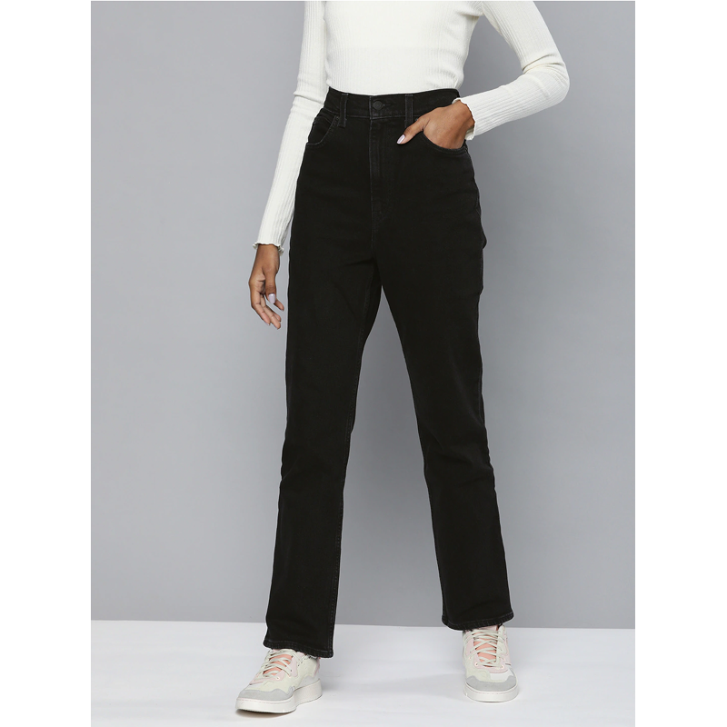 Levis Women Black 70S Slim Straight Fit High-Rise Stretchable Jeans