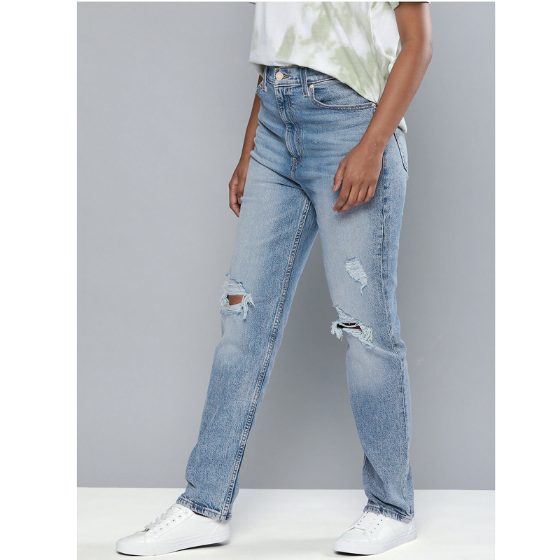 Levis X Deepika Padukone Women Blue 70S Straight Fit High-Rise Ripped Stretchable Jeans