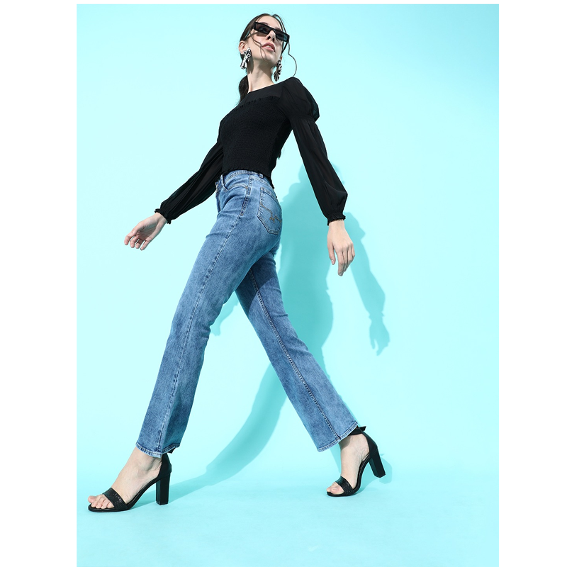 Roadster Women Stunning Blue High-Rise Flared Stretchable Jeans