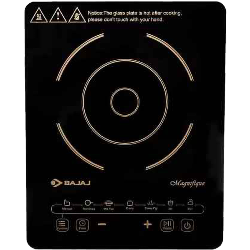 General Brand - BAJAJ model_name - Magnifique Model - Magnifique induction 2000w Type - Induction Cooktop Color - Black General Features Body Material -Plastic Control - Touch Panel Timer - Yes Elements on Cooktop - One indicator burner Power Indicator - Yes Power Features Power Consumption - 2000 W