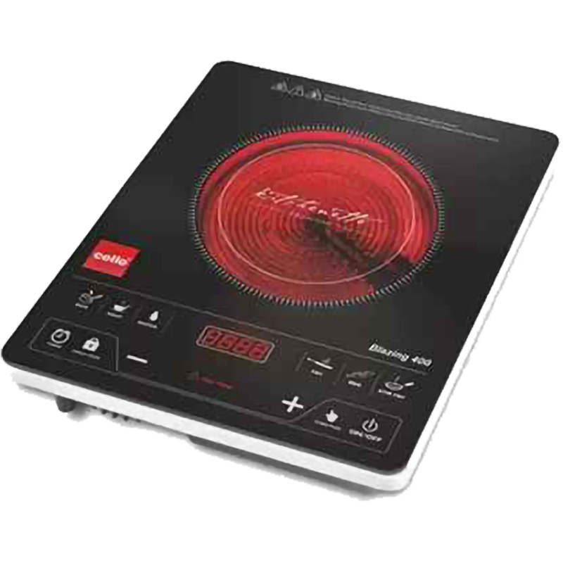 General Brand - cello model_name - Blazing 400A Model - Blazing 400 Type - Induction Cooktop Color - Black General Features Body Material - Stainless Stell Control - Touch Panel Preset Cooking Menus - 6 Display - Digital LED Display Timer -Yes Fast Heating - No Elements on Cooktop - Black Crystal top plate Spill Proof - No Grid Type - Induction Cooktop Reversible Burner - No Power Features Power Consumption - 2000 W Power Input - 220-240, 50Hz