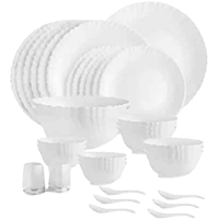 Specifications Sales Package - 6 - Piece Multipurpose Bowl, 6 - Piece Mini Veg Bowl, 6 - Piece Veg Bowl, 6 - Piece Quarter Plate, 2 - Piece Serving Bowl, 2 - Piece lids(For Serving Bowl), 6 - Piece Spoons, 1 - Piece Multiutility Bowl Model Number - 8904350443284 Diameter - Plate - 11 inch