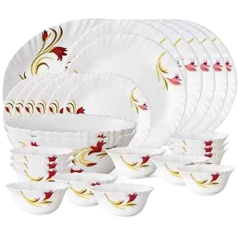 Specifications Sales Package - Package Contents- 6-Piece 11" Full Plates, 6-Piece 7" Quarter Plates, 1-Piece 13" Rice Plate, 2-Piece 8" Serving Bowls, 6-Piece 5" Soup Bowls, 6-Piece 4.5" Veg Bowls Model Number - Red Lily Opalware Dinner Set Finish - Glossy Design - Floral Diameter - Plates 11 inch, Quarter plates 7 inch, Rice Plate 13 inch, Serving Bowls 8 inch, Soup Bowls 5 inch, Veg Bowls 4.5 inch