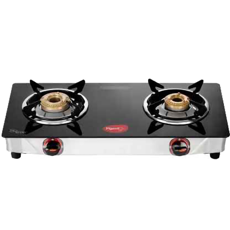 General Brand - Pigeon Model Name - Popular 2 Burner Glass Cooktop Model Number - 15245 Body Material - Glass Trivet Material - Steel Burner Material - Brass Color - Black Shape - Rectangle