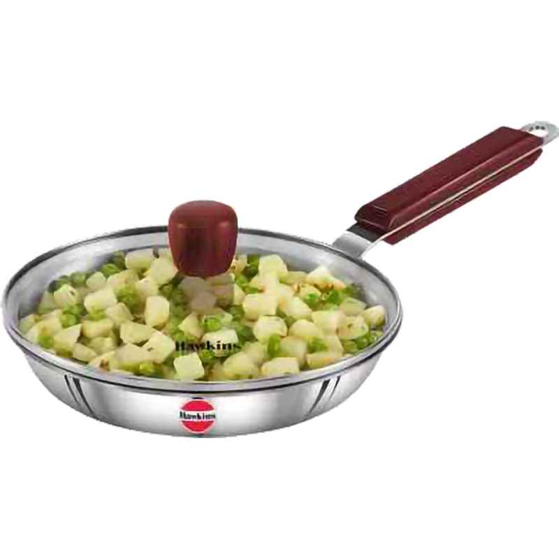 General Brand - Hawkins Model Name - Triply Stainless Steel Frying Pan with Glass Lid (SSF22G) Model Number - SSF22G Color - Silver Capacity - 1.4 L Type - Pan Pan Type - Fry Induction Bottom - Yes Material - Triply Handle Features - Stay-cool, durable and natural Rosewood Handle Lid Included - Yes Non-stick - No