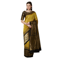 Mitera Mustard Yellow Silk Blend Solid Banarasi Saree - NWSREE1035