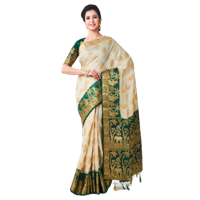 Mimosa Off-White & Green Art Silk Woven Design Kanjeevaram Saree - NWSREE1005