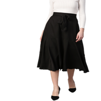 Women Black Solid Midi A-line Skirt - SKI118TS