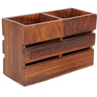 Woodcart 2 Compartments Wooden Handmade Wooden Cutlery Stand - WCOFTBAX023