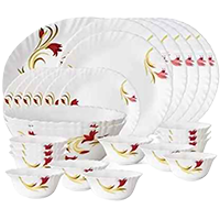 BOROSIL Pack of 27 Opalware Red Lily Opalware Dinner Set - Red Lily Opalware